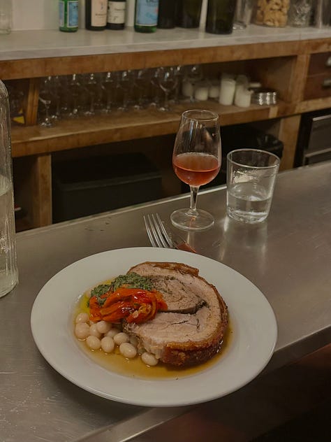 Dinner, including a striking porchetta, at À Moro.